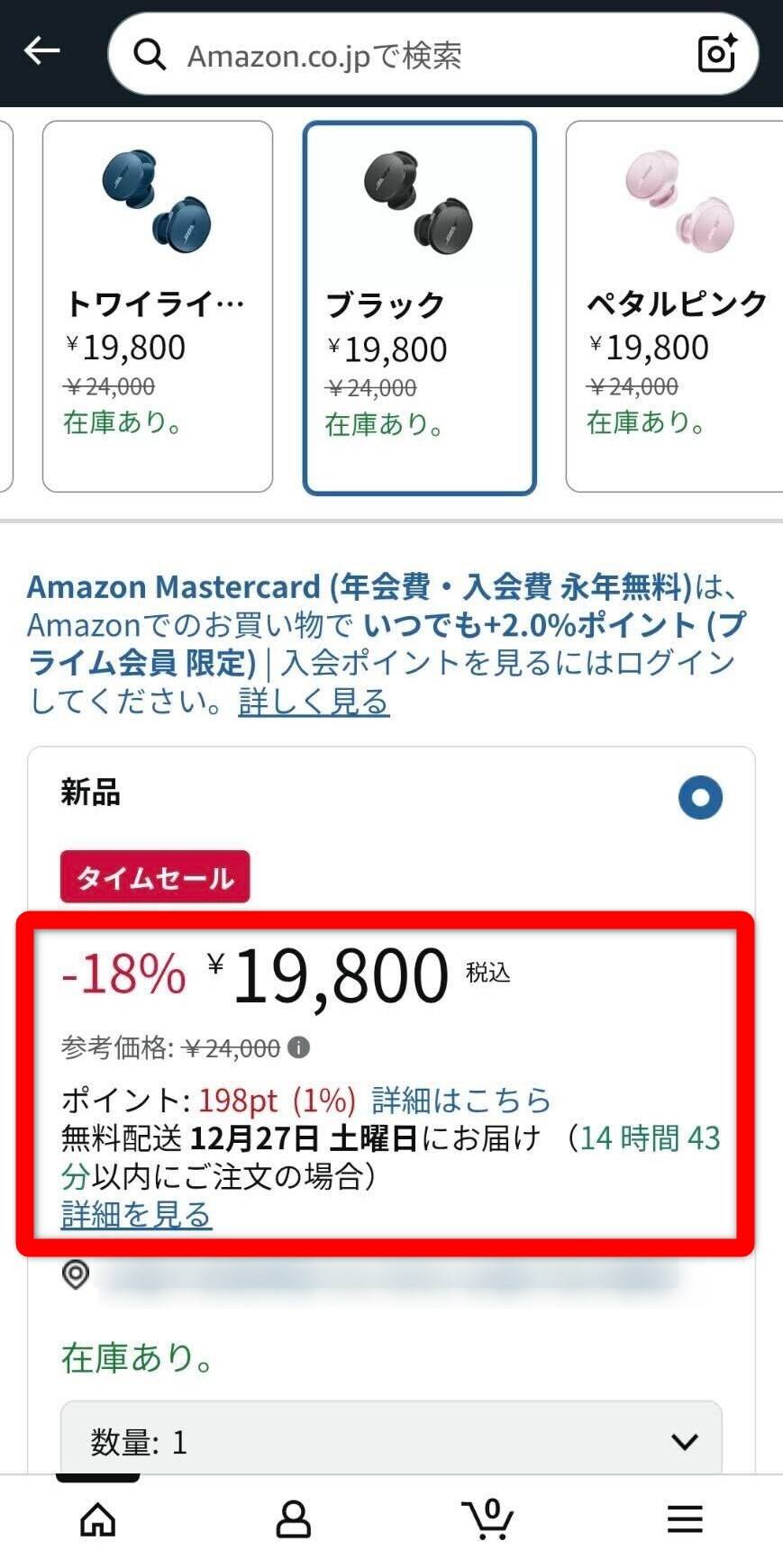 日時指定便のなかでも、Amazonのシステムにより当日配送可能だと判断された場合はこのオプションが選べるようになります。「お急ぎ便」の場合は当日配送でもいつ届くのかわかりませんが、こちらは配達時間帯まで指定できる点で優れています。