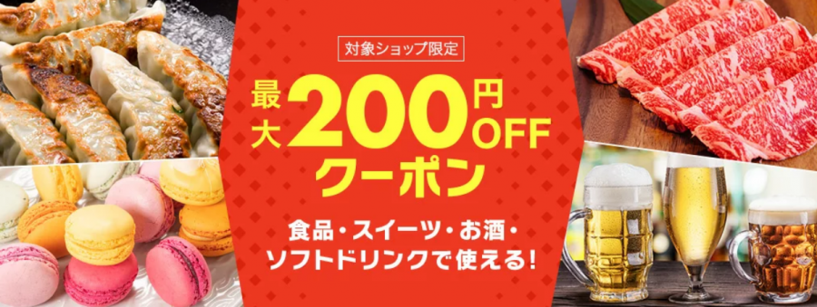 食品・スイーツ・お酒・ソフトドリンクで使える最大200円OFFクーポン