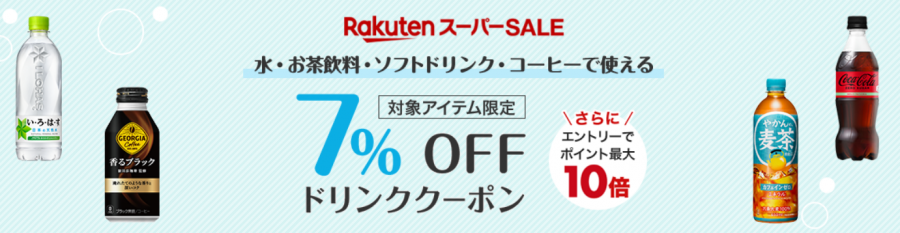 水・お茶飲料・ソフトドリンク・コーヒーで使える最大7%OFFクーポン