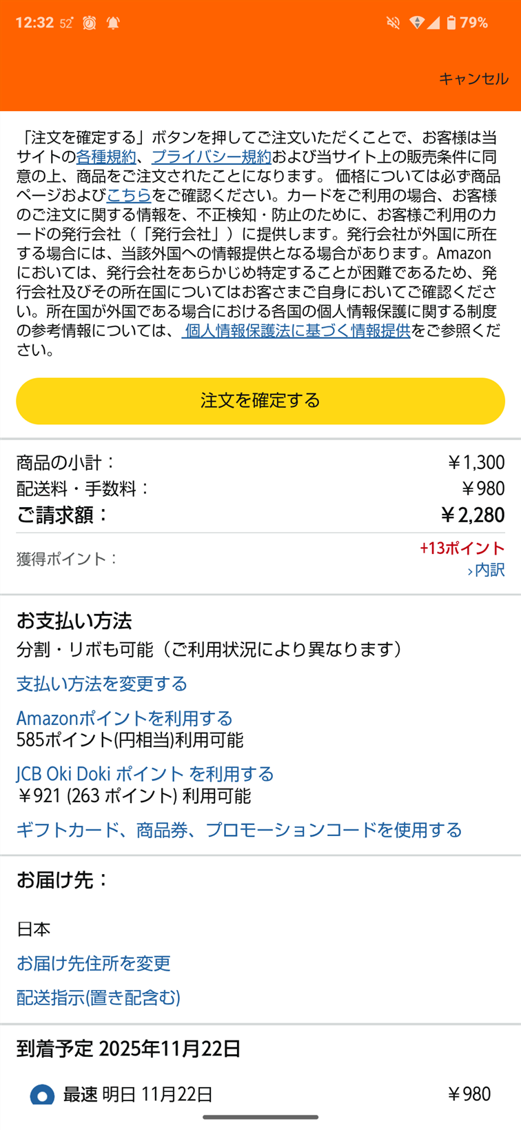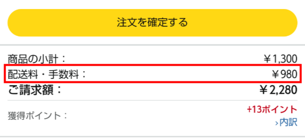 そう、「配送料・手数料」の名目で980円が追加されていたのです。本体の約75%の配送料・手数料は痛すぎます……。