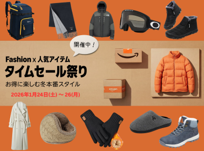 Amazonでは2026年1月24日(土)~1月26日(月)23:59までの3日間、「Fashion×人気アイテム タイムセール祭り」を開催中。これから迎える冬本番に活躍する人気アイテムがセール価格で購入できるチャンス! メンズ、レディース、キッズの服だけでなく、バッグやシューズ、極暖ヒートアイテムなども対象です。