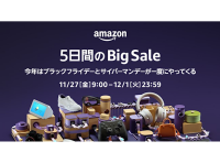 「Amazon」ブラックフライデー&サイバーマンデーを開催! 11/27から5日間の大型セール
