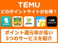 通販サイト「Temu(テム)」では公式のポイント機能はありませんが、特定のポイントサイトを経由することで購入金額の最大25%をポイントと...
