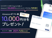 SAISON CARD Digitalを利用してAmazonで50,000円以上の買い物をすると、もれなくAmazonギフト券1万円分をプレゼント中です。 SAISON CARD...
