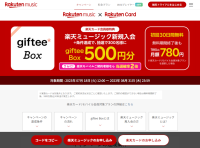 楽天ミュージック新規入会でgiftee Box500円分当たる 楽天カード会員限定 8/31まで